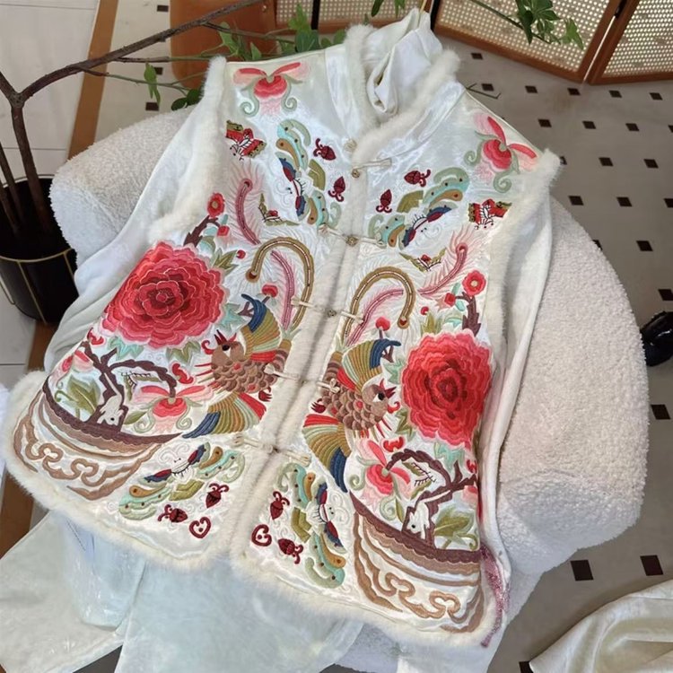 2024秋冬新作重工レトロ刺繍盤バックルベスト