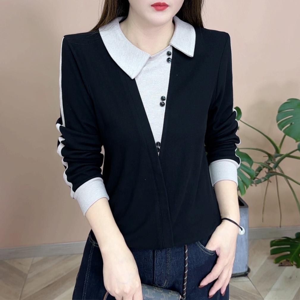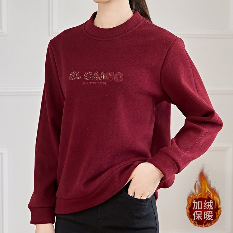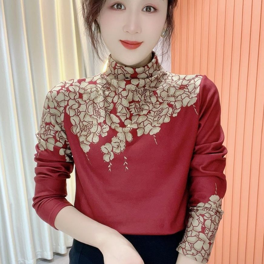 2024秋冬の新型の半高襟の両面の絨毛とベルベットの厚い底のシャツの気質の百合の洋風の保温のtシャツ