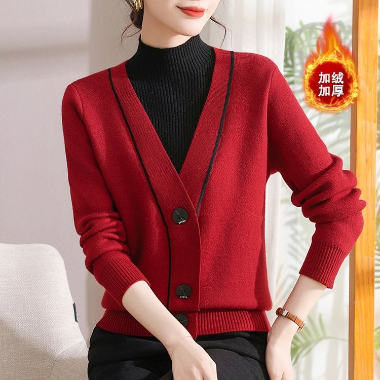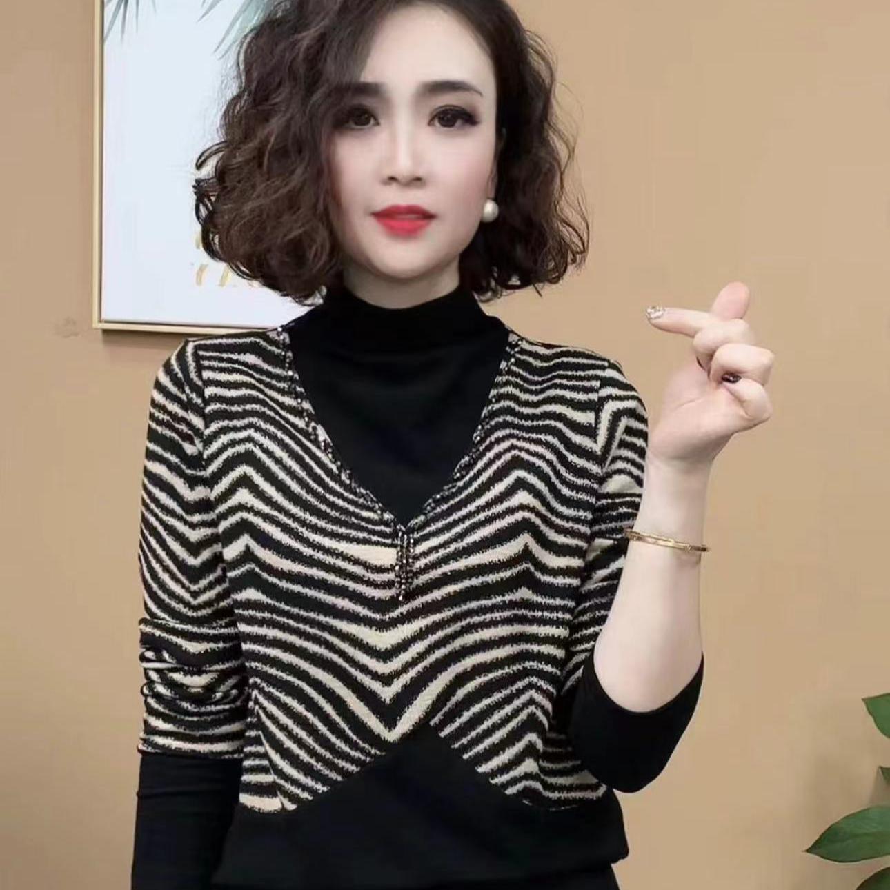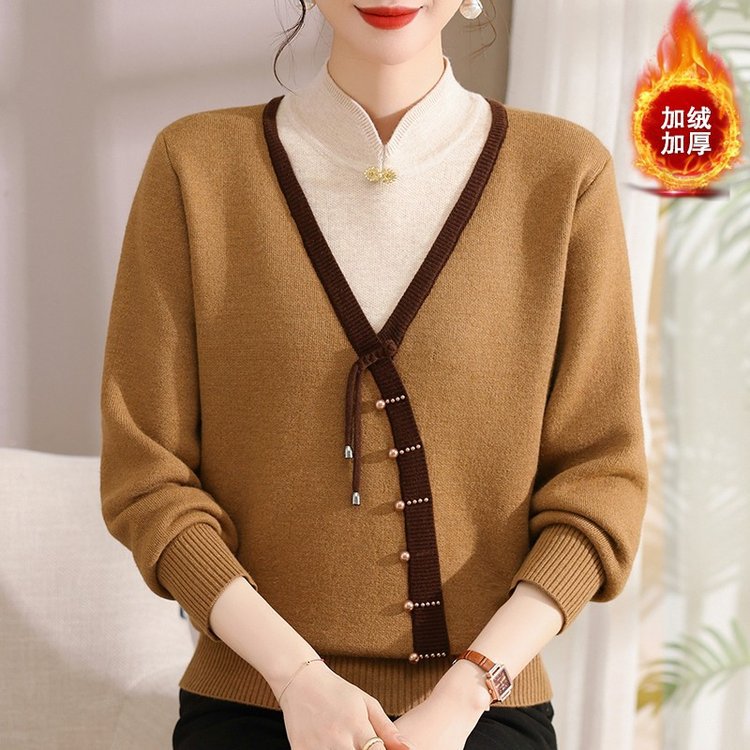 2024冬の新型ベルベット保温国風偽2枚のセーターファッションファッションママは保温上着を着ている