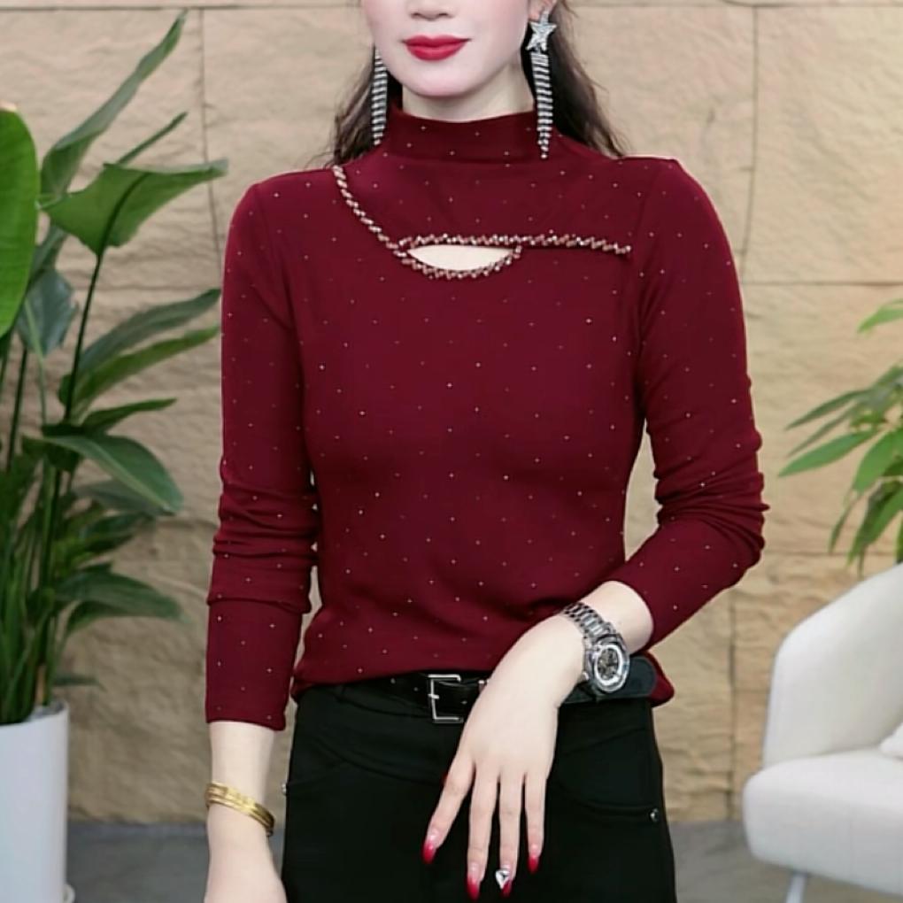 代理生中継の起爆金2024秋冬ファッションには、パーマドリルの透かし彫りとベルベットの保温がやせた気質のブラウスがある