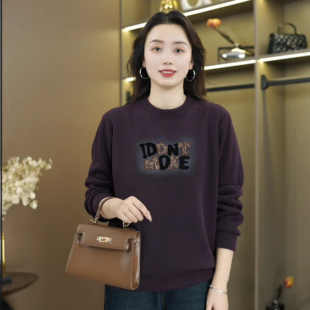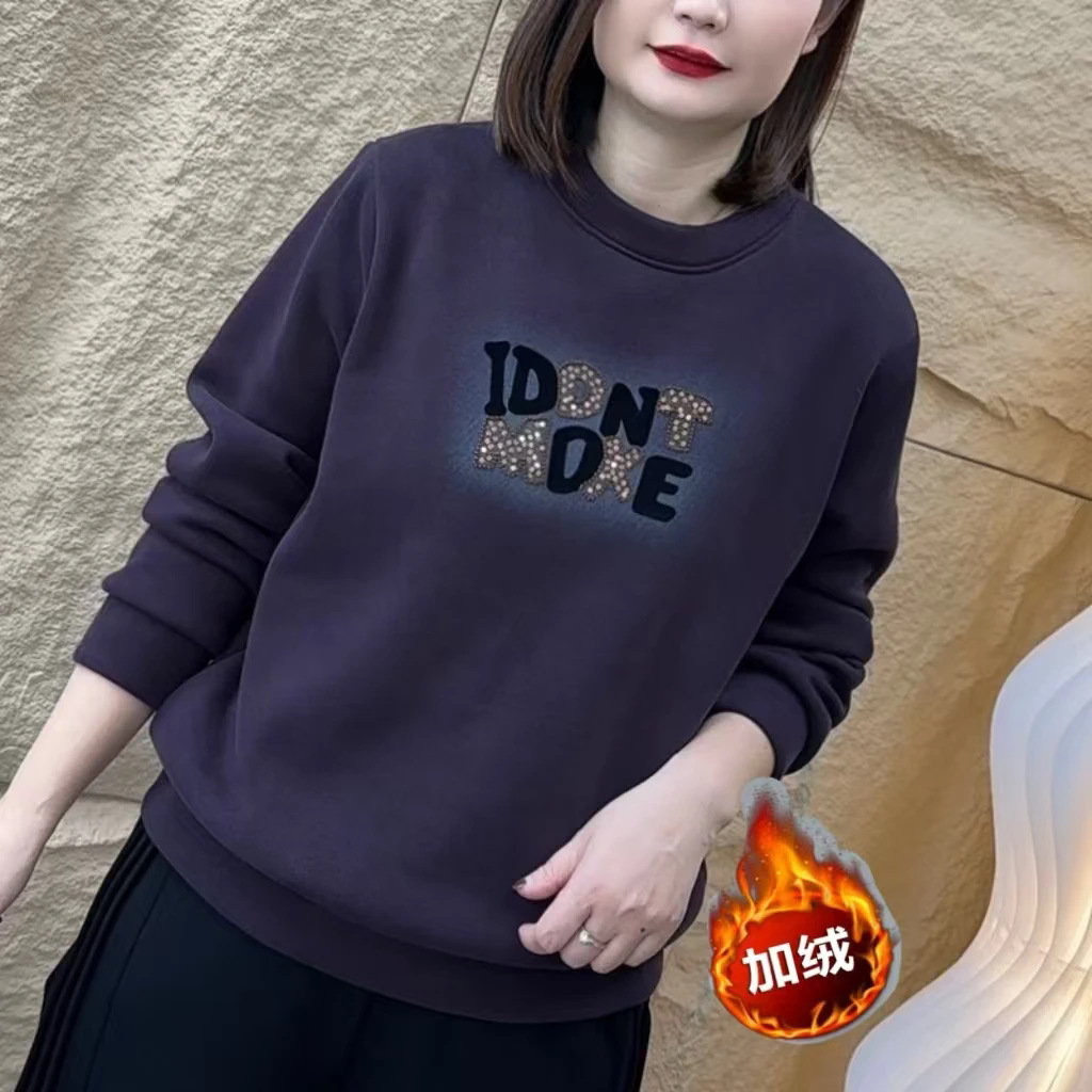 代理生中継の起爆金2024秋冬の新型ベルベットは丸首を厚くして年齢を減らしたカジュアルなホットドリル保温ガード