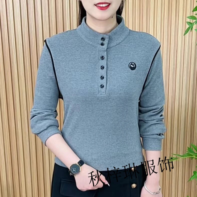 お母さんの秋冬の新型のベルベットの底のシャツは上着を厚くして肉のファッションの洋風の砕花の木の耳の襟の上着の女性を遮ります。
