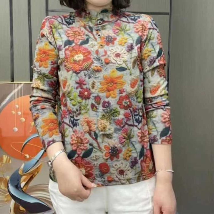 2024秋冬の新型ジャカードとベルベットのファッションカジュアルで痩せたシャツのプリント気質の半高襟保温上着