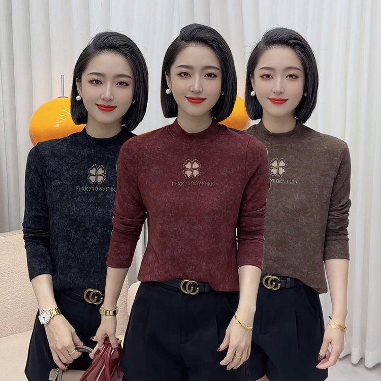 秋の新商品の半高襟のホットドリルの長袖の底の小さいシャツの2024ファッションの洋風のデザイン感は身を修める純色のtシャツです。