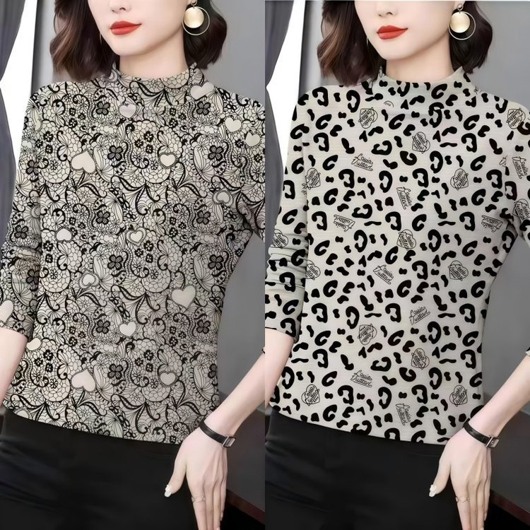 秋の新商品の半高襟プリントの底のシャツ