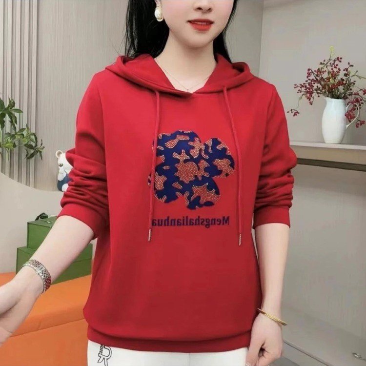 洋気減齢tシャツ女性ファッション百合母装修身痩せ気質上着新長袖フード