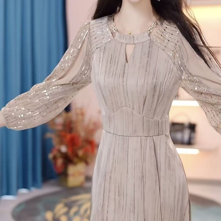 秋の新型高級軽豪華ワンピース2024ファッション気質洋気修身が痩せて豪華な中長スカート