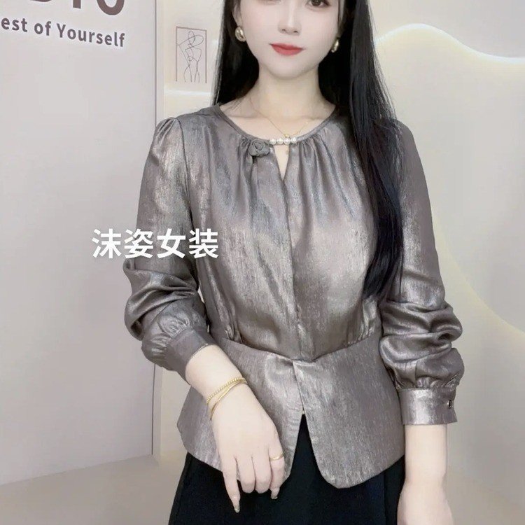高級の底のシャツの女性の新型のキラキラ光る春と秋のファッションはやせています。