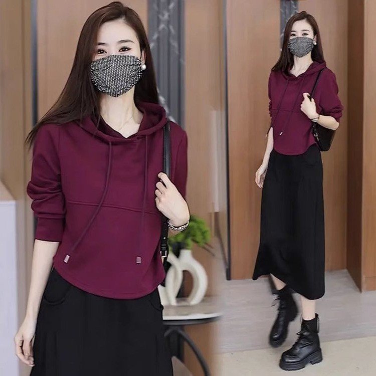 秋の新型ベストフード付きスウェットスカートのセット