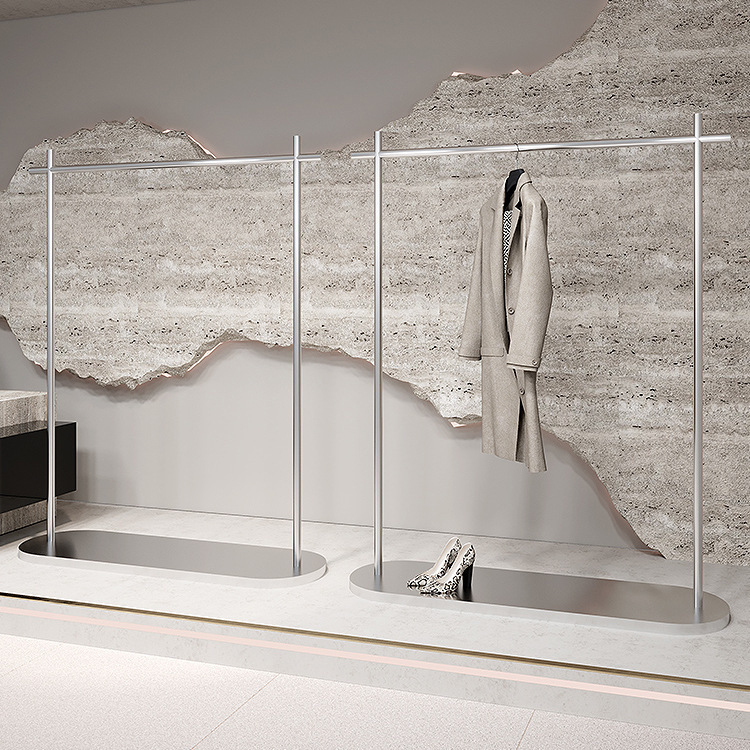 衣料品店ディスプレイラックステンレス鋼黒洋服ラック床置きディスプレイラック婦人服店特別なディスプレイ棚