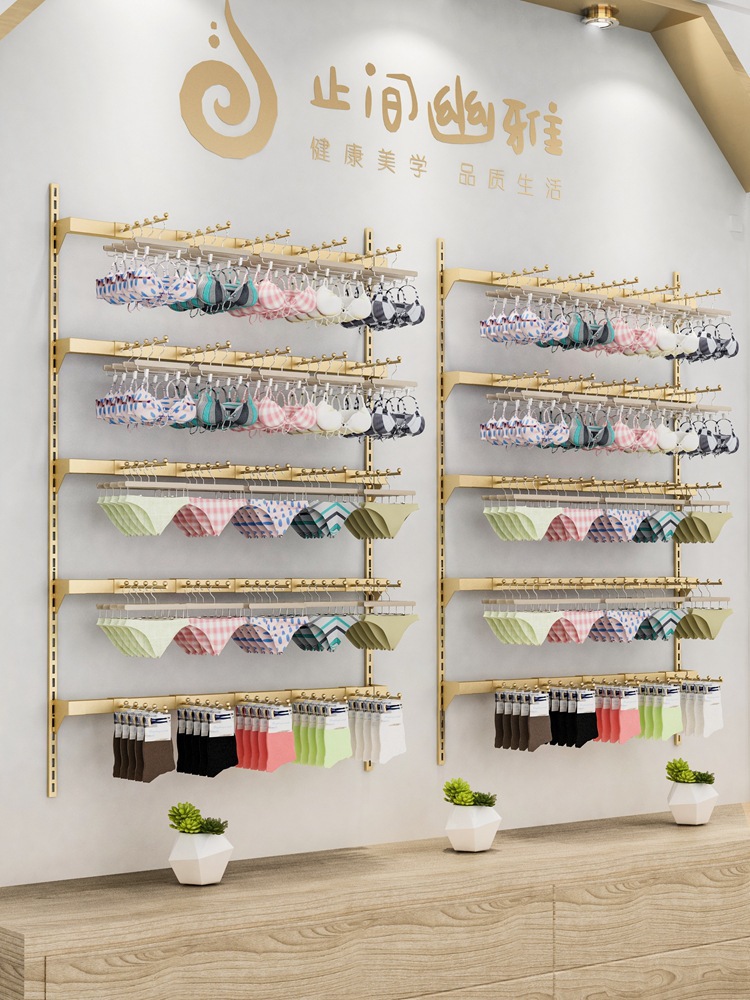 高級下着店調節可能な棚ディスプレイラックアイアンブラジャー下着靴下ラック壁フック下着ラック