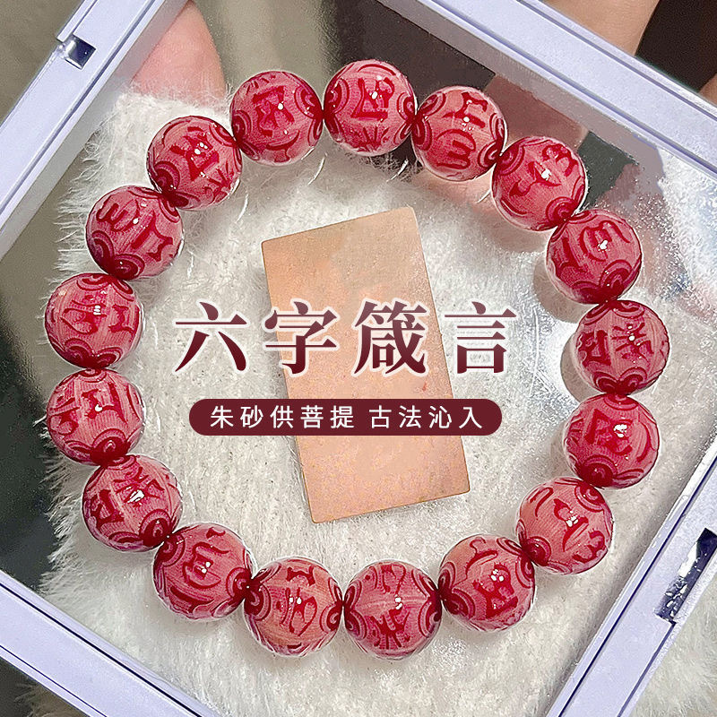 メーカー卸売り天然菩提根老料朱砂供菩提子円珠精工彫刻六字箴言