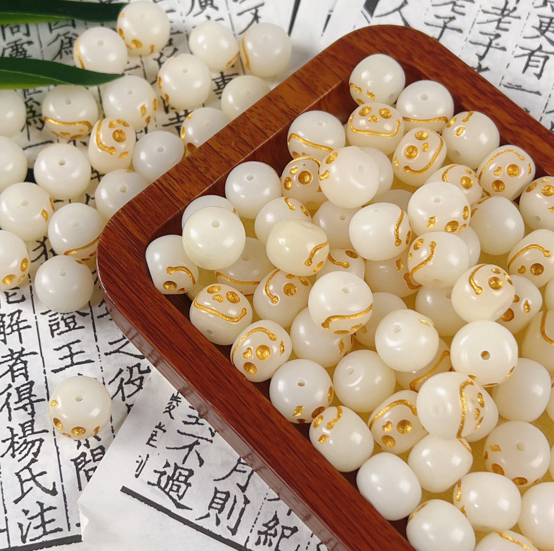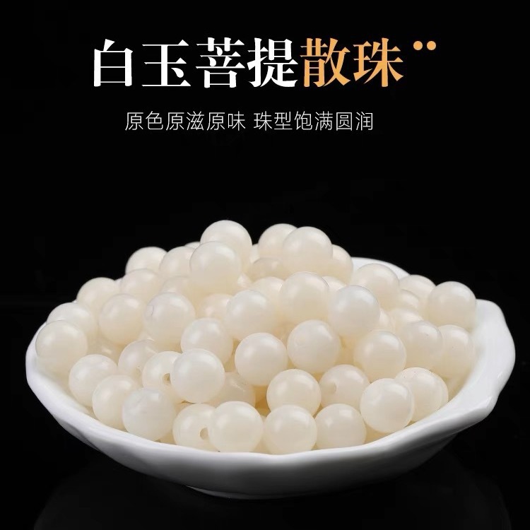 メーカー卸売り天然菩提根散珠乳白色円珠直播ソース老料乾磨散珠単粒白玉