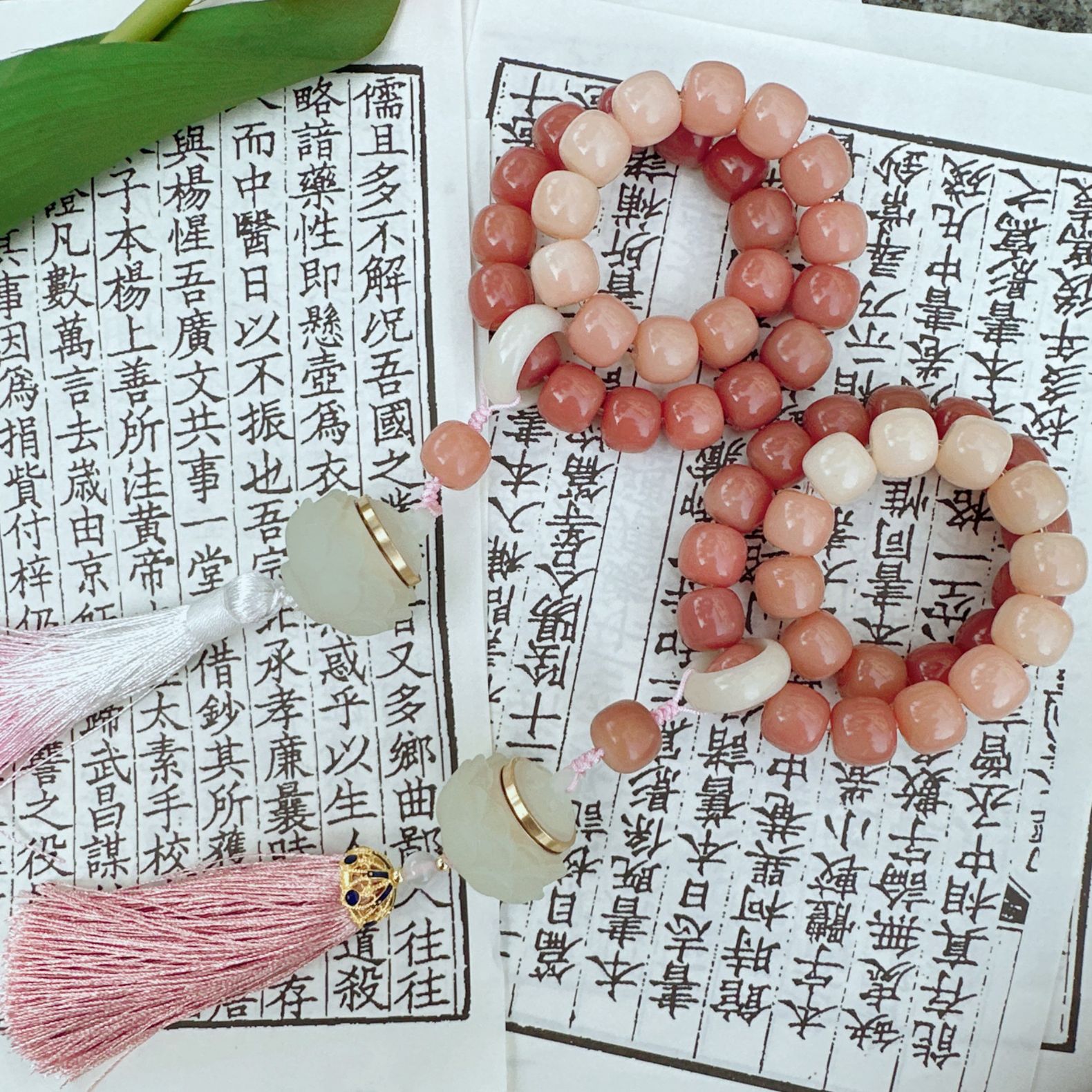 メーカー卸売り天然菩提根手串桜花粉雪ライム美人杏花微雨玉多宝色巻き指柔