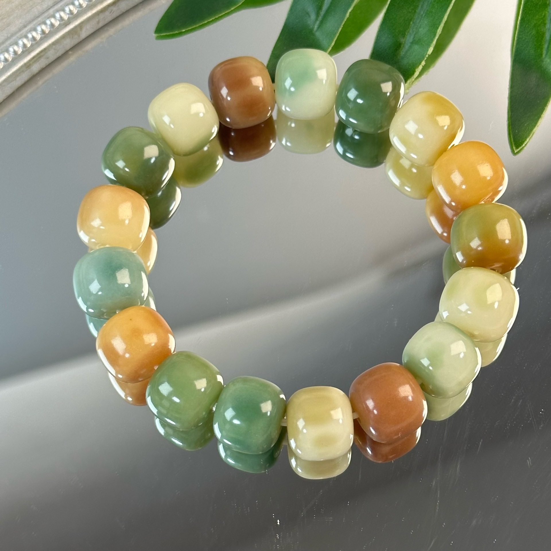 メーカー卸売り天然菩提根手串玉化老料玉12mm多宝色巻き指柔手持ち数珠