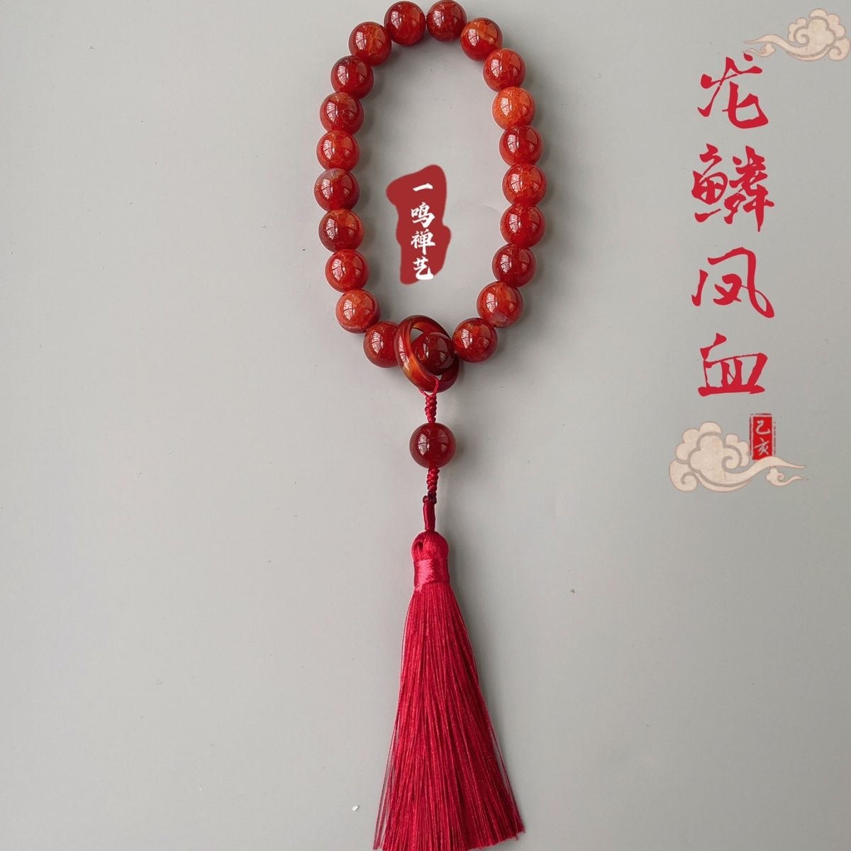メーカー卸売り天然龍紋瑪瑙手持ち流蘇手串車掛ストラップ仏珠数珠14mm玉