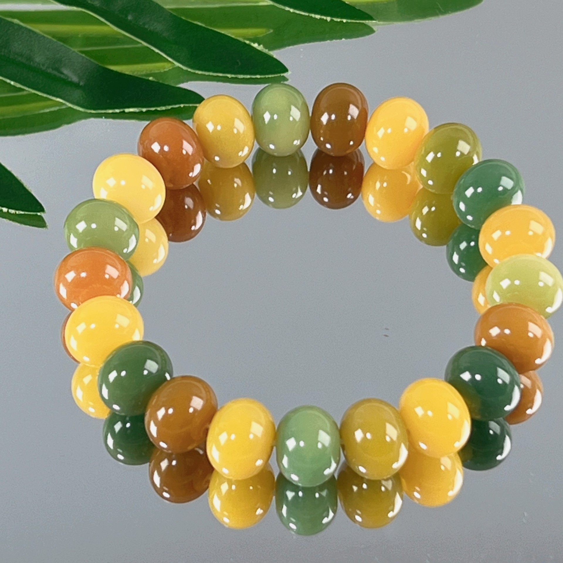 メーカー卸売り天然菩提根手串レモン百香果13mm太ったリンゴ多宝色グラデーション色の古い材料