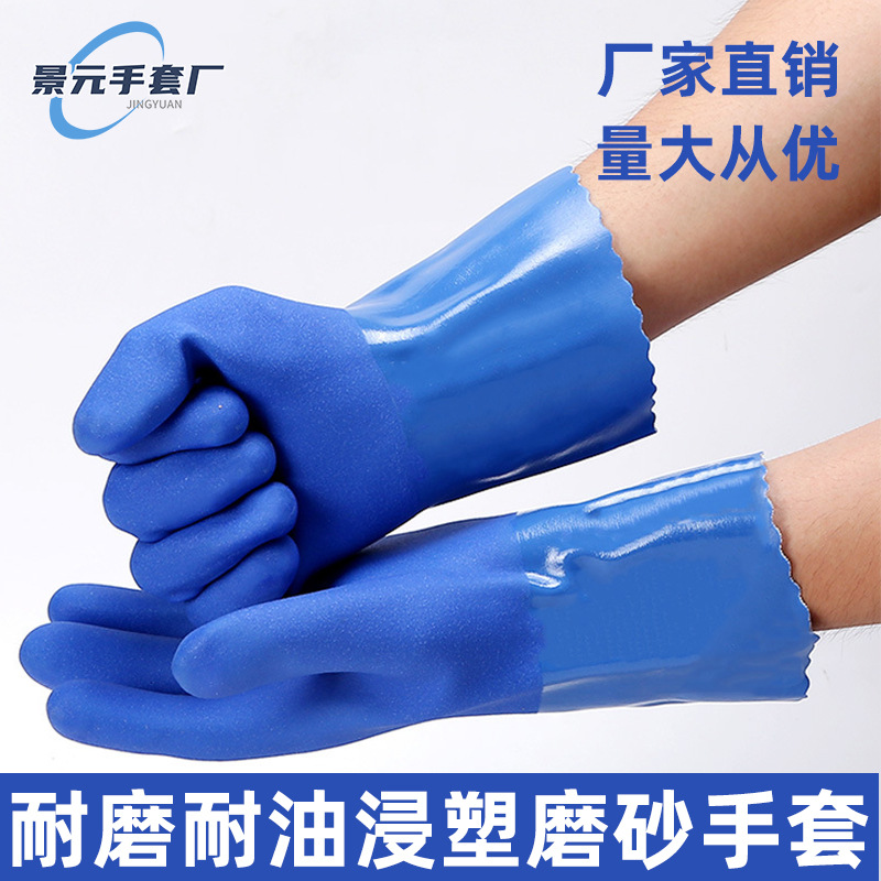 青色耐油耐摩耗pvc浸塑フロスト手袋増厚耐酸アルカリ工業防護防化防食手袋