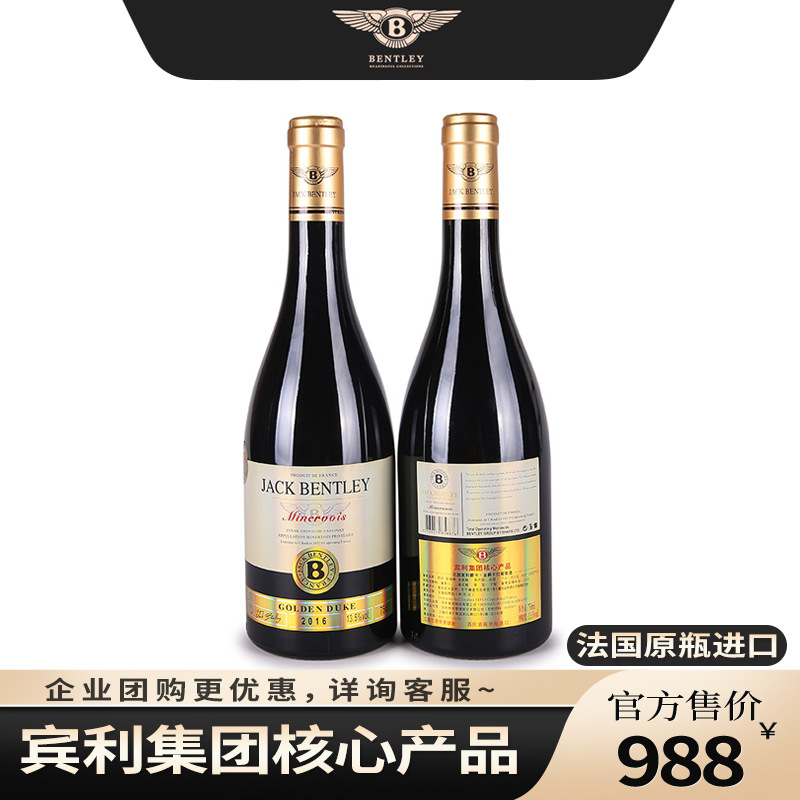 正品ビンリBENTLEYフランス原瓶輸入赤ワイン750ml高級パーティ用金ジャズ赤ワイン