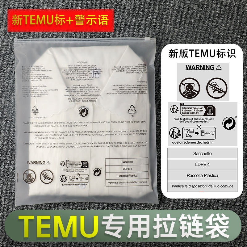 Temu新版国境を越えた標識temu包装袋警告語ジッパー袋透明フロスト服装包装袋ロット