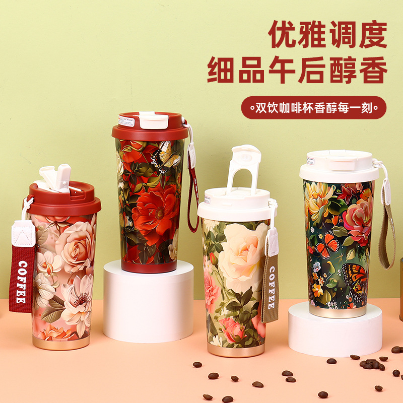 新商品316ステンレス保温カップ高颜値双飲コーヒーカップ手持ちカップ車載カップ卸売り