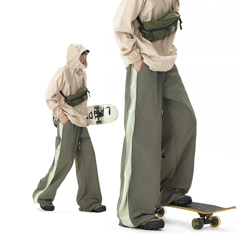 国境を越えたアメリカの工装カジュアルパンツ女性2025夏の薄いタイプのパラシュート速乾運動広脚長ズボン