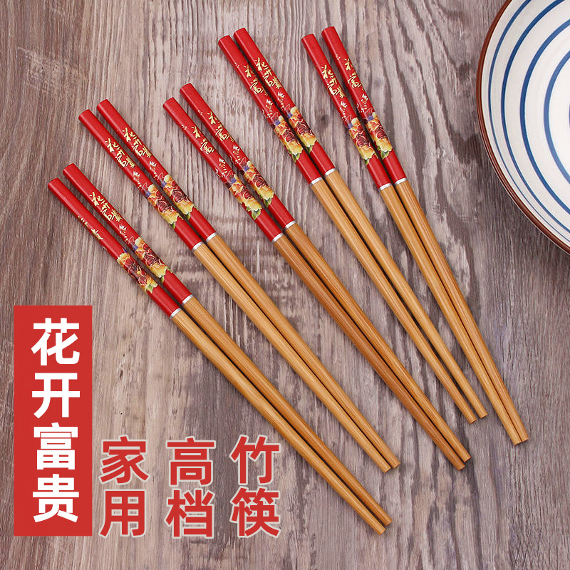 高級天然楠竹長竹成人箸家庭用防かび花開富貴竹箸滑り止め木箸ホテル箸