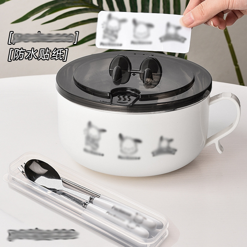 インスタントラーメンボウル ステンレス製 日本風 犬の漫画柄 水切り可能 学生用弁当箱 寮用 大容量 漫画柄食器 可愛い
