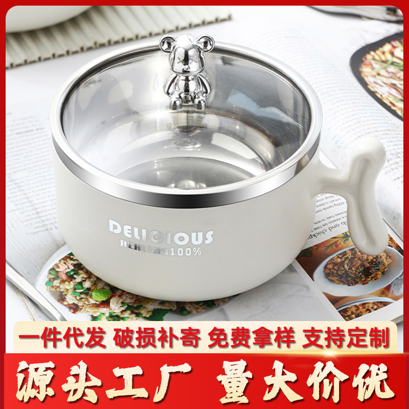 新型カップラーメン碗304ステンレス蓋付きガラスは学生寮のサラリーマンの大容量の日用弁当箱を厚くします。