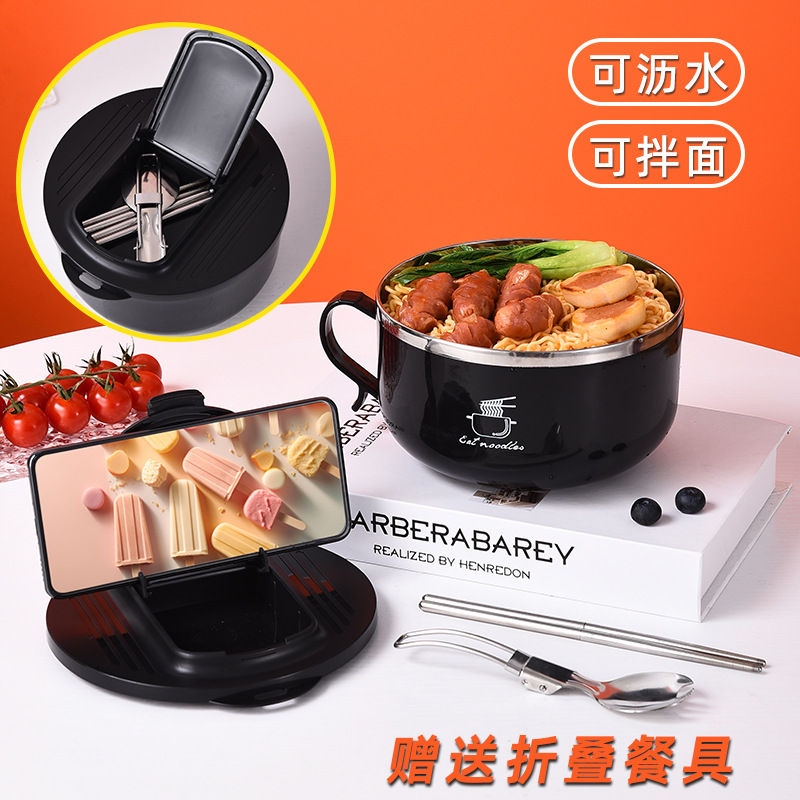 蓋付きステンレスインスタントラーメンボウル、水切り可能な学生寮ボウル、食堂食事ボウル、サラリーマンボウルと箸セット食器