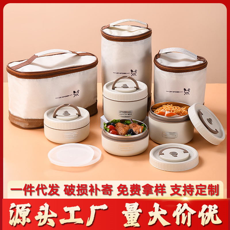 ステンレス保温弁当箱保温桶電子レンジ日本式学生二重蓋付き円形食品級弁当箱