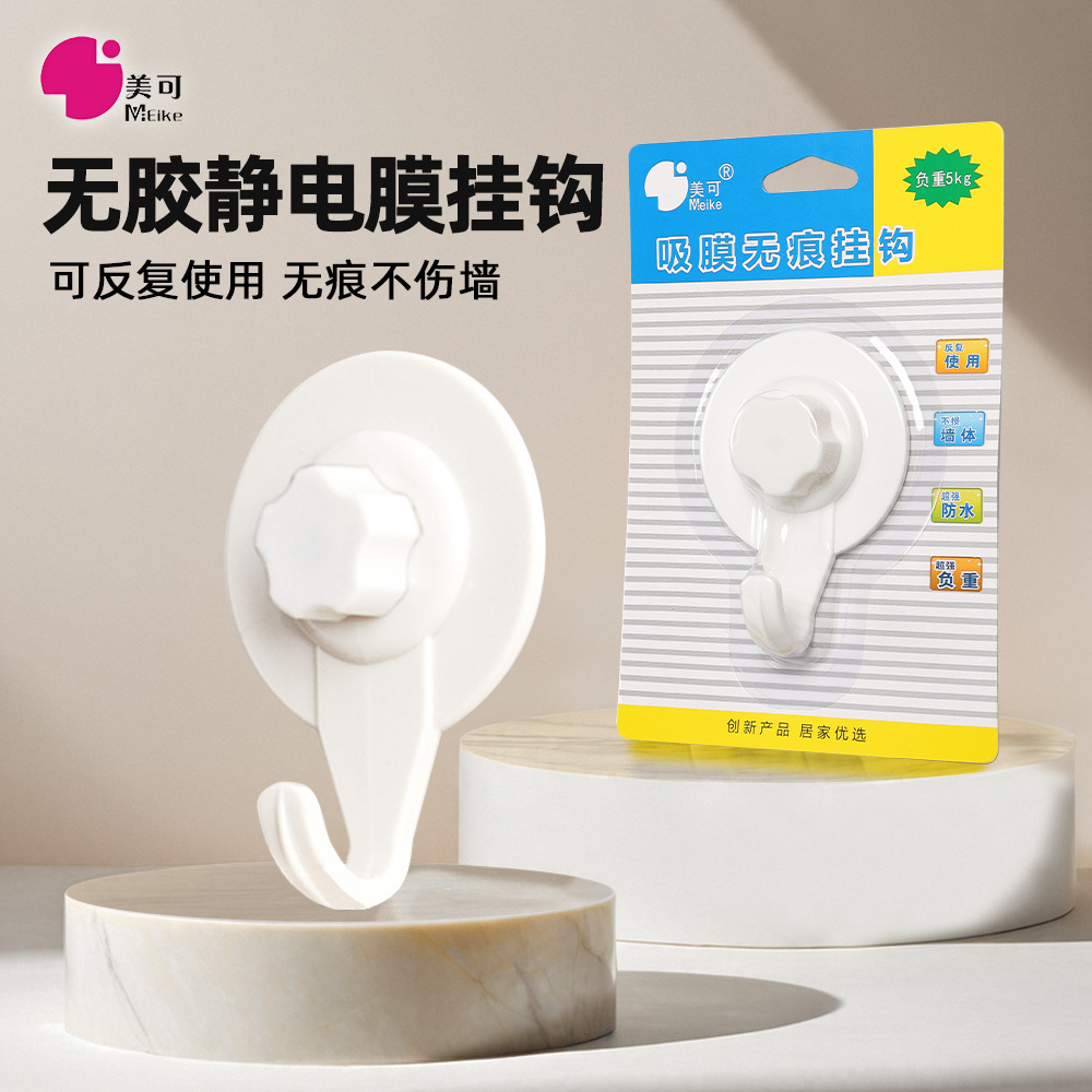 Meike 静電フィルム吸引カップ衣類帽子フック繰り返しハンガー使用粘着フック防水跡のない収納