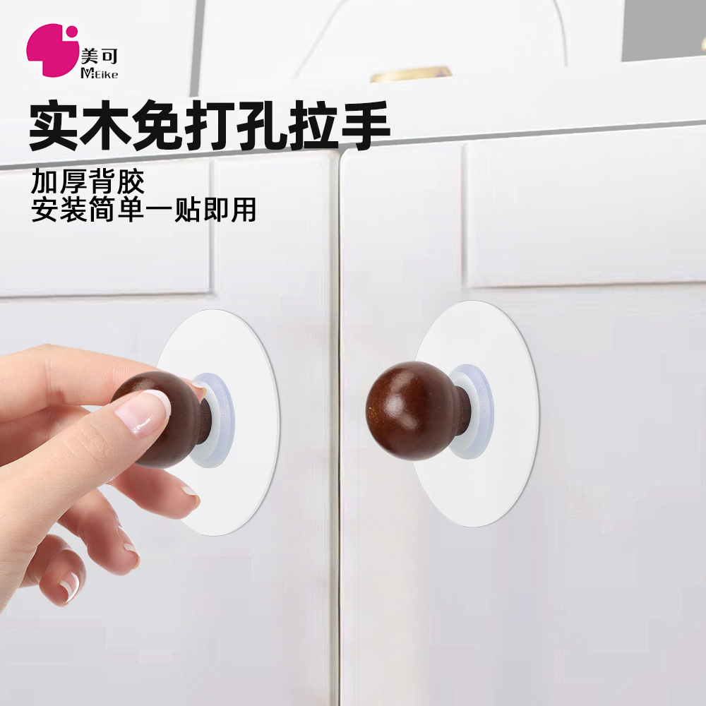 自粘無打孔実木キャビネットドア取っ手ハンガーキャビネットドア引き出し家具円形吸盤木製取っ手フック