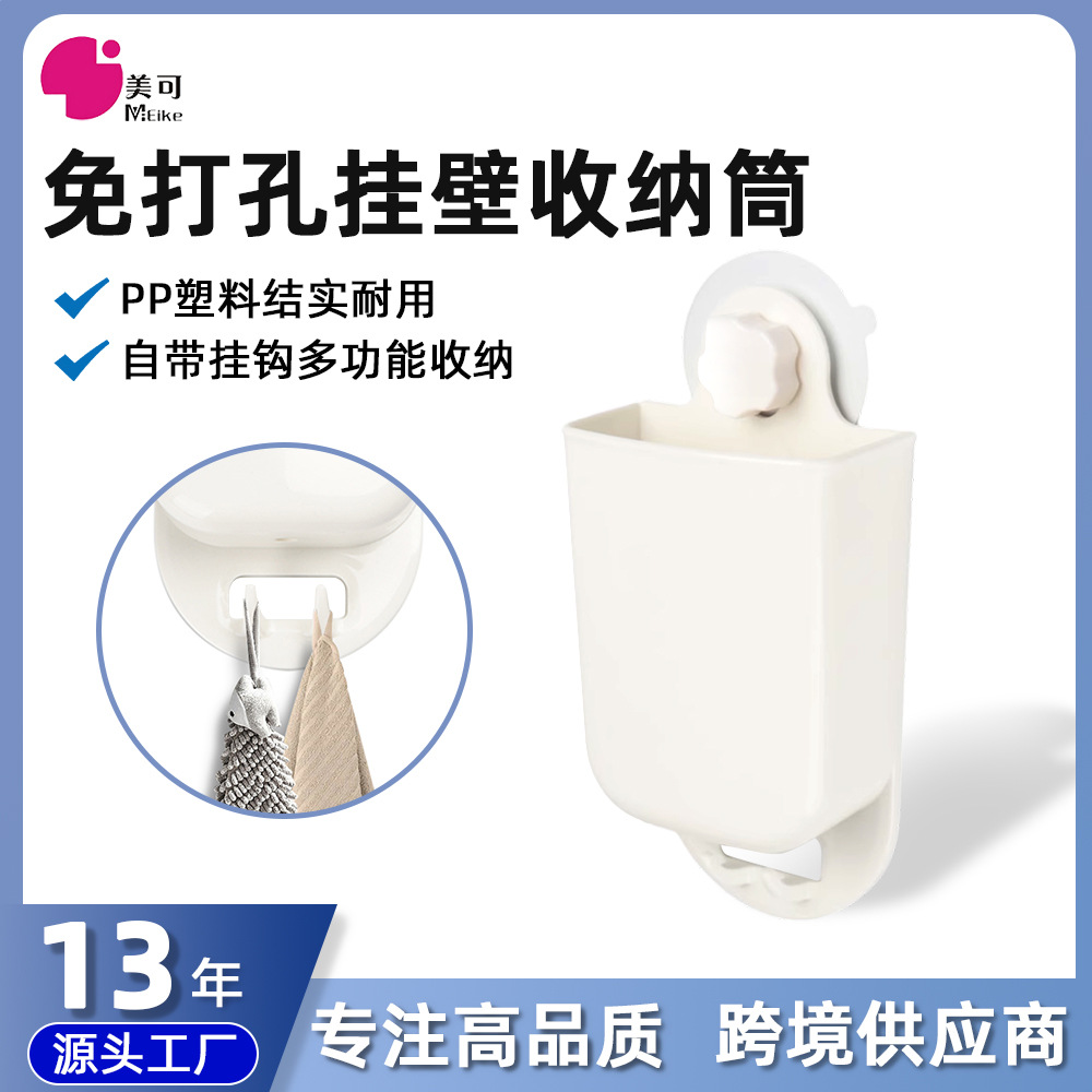 穴を開けないで、箸の筒の壁掛け式の家庭用吸盤の置物棚の箸かごの水切り棚の歯ブラシの収納箱を貼ります。