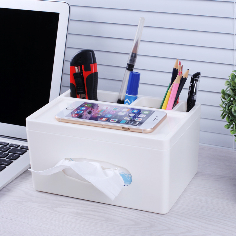 シンプルなデスクトップ収納ボックスの置物に四角いティッシュを置いています。