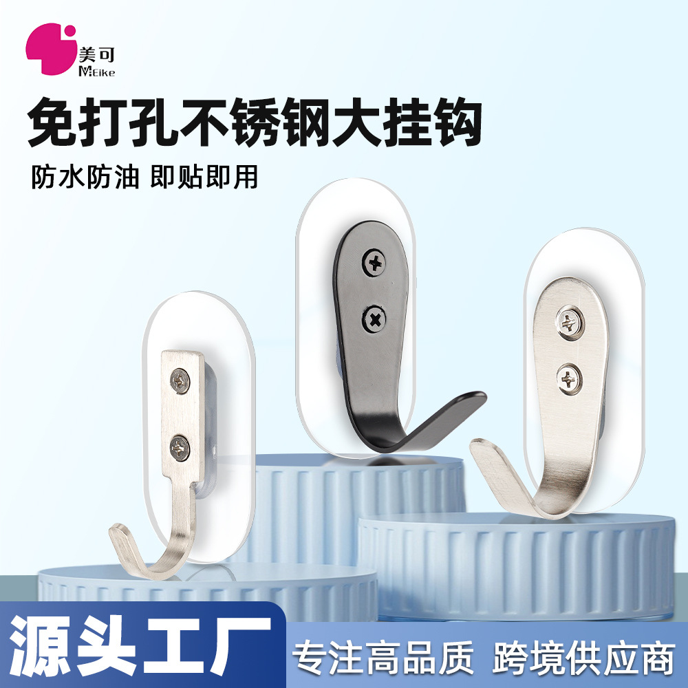 強力な無痕貼り付け無穴ステンレス大フック無釘ドア後コートフック金属無痕フック