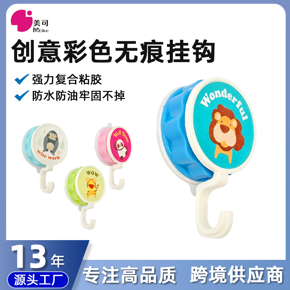 穴を開けないで痕跡のない強力な接着剤のフックは台所の子供の部屋の壁の壁の上のフックの漫画のかわいいドアの後でフックを貼ります。