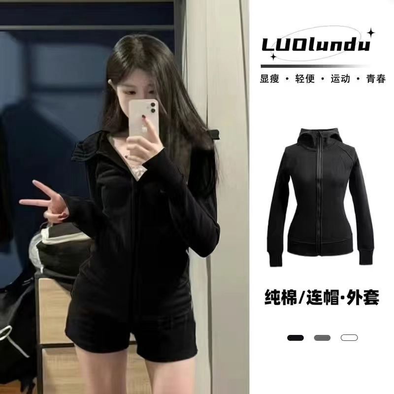 Luluの上着の同タイプのコートの女性の秋冬の新型の春と秋のカーディガンの帽子の衛衣の2024は即墨の婦人服でやせています。