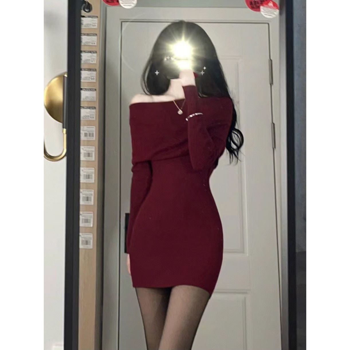 2024新作春秋純欲ギャル高級セクシーバッグ尻気質黒首長袖ワンピース女神範