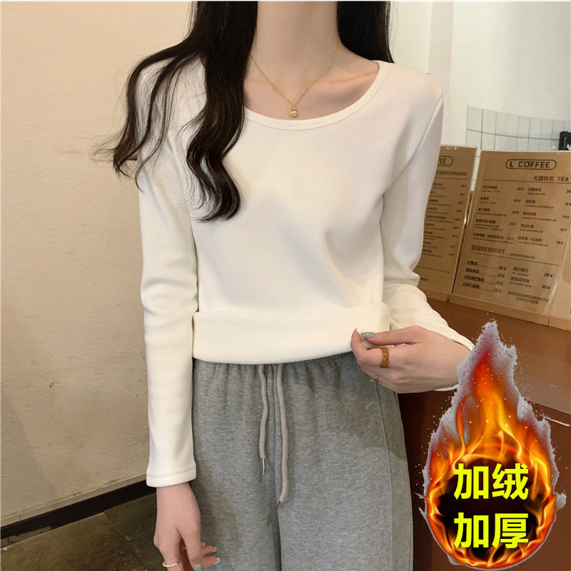2024秋冬の新型ベルベットは白い長袖tシャツの女性を厚くして、防寒して底の保温上着の女性を身に着けている
