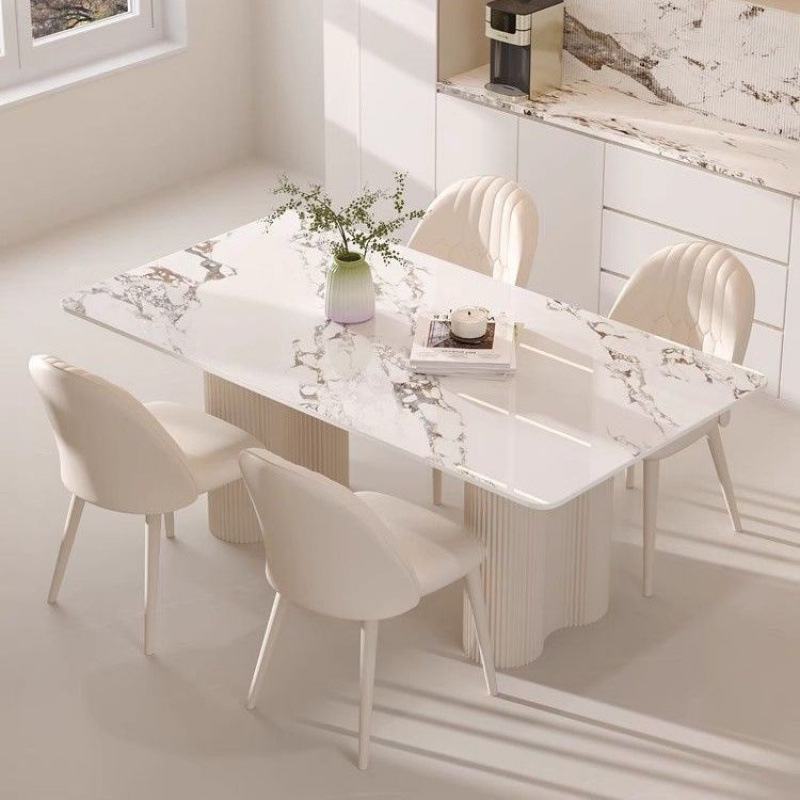 一体型スレートクリームダイニングテーブル、小さなアパート、シンプルで軽い高級感、インターネットセレブの長方形のダイニングテーブルと椅子の組み合わせ