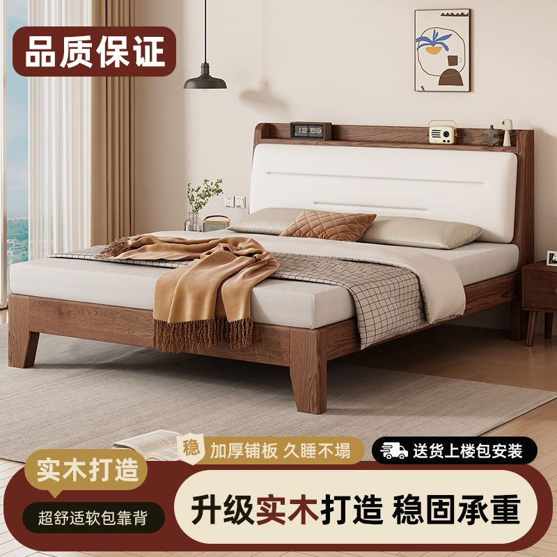 無垢材ベッド モダン シンプル 1.5m 木製 ソフトパック ダブルベッド 1.8m マスターベッドルーム ビッグベッド 1.2m シングルベッドフレーム