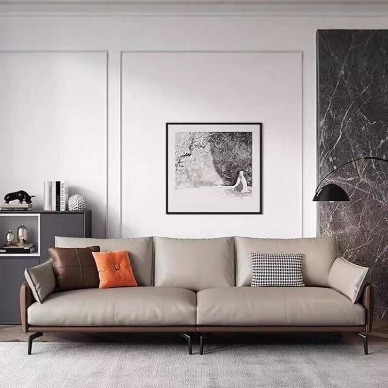イタリアのミニマリスト猫スクラッチレザーモダンシンプルな小さなアパートソファリビングルーム賃貸住宅3人用ストレートテクノロジー布ソファ