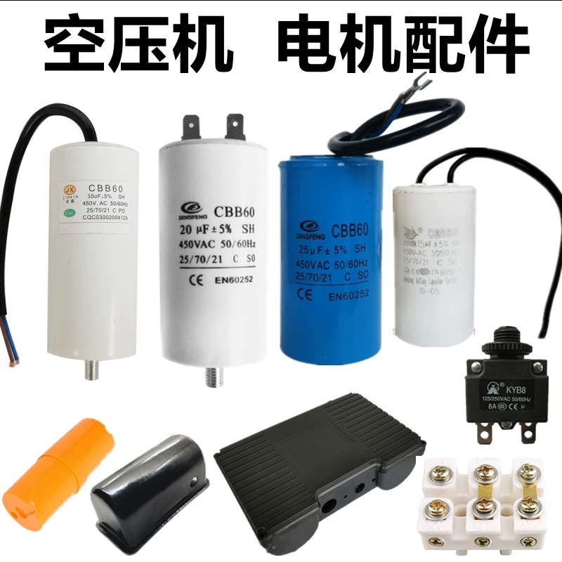 エアコンプレッサ静電容量オイルフリー静音ポンプ部品モータ配線箱ねじ付き起動運転コンデンサ