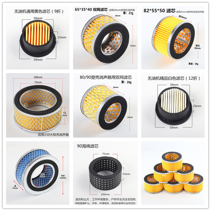 オイルフリー静音エアーポンプエアコンプレッサ部品大全マフラー消音エアフィルターフィルター空フィルター紙