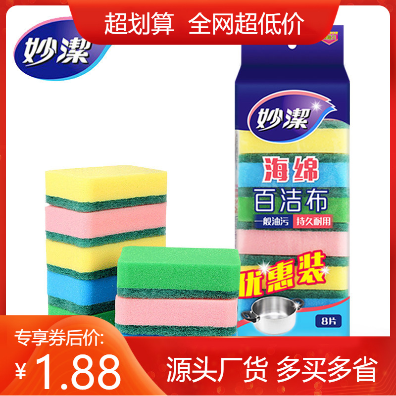 妙潔スポンジ百潔布8枚入特恵台所皿洗い鍋ブラシ洗浄ブロック一般油汚れ洗浄用