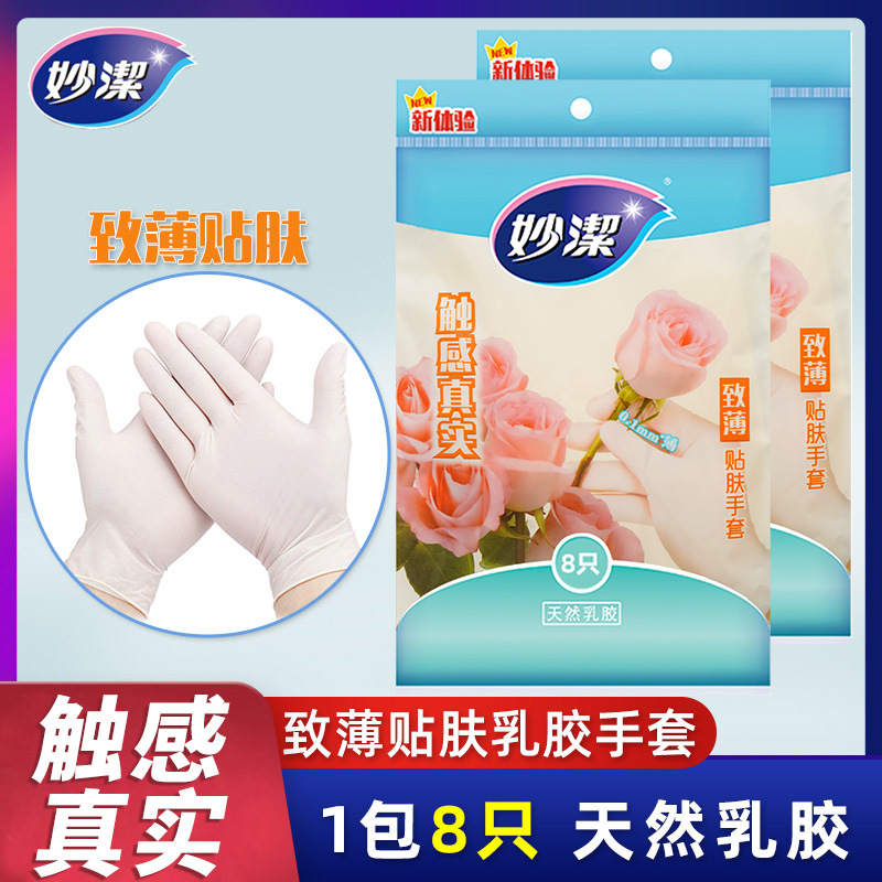 妙潔正規品無味低感度薄いニトリルゴム無粉食器洗い使い捨て家庭用食品級家事手袋