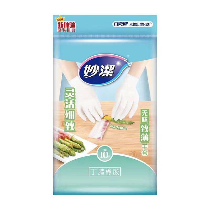 妙潔正規品無味低感度薄い手袋ニトリルゴム使い捨て家庭用食品級家事長持ち手袋