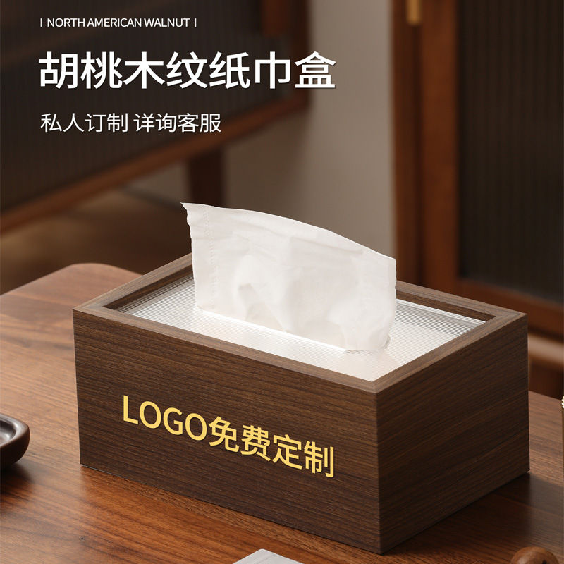 ティッシュボックス家庭用木製中国風リビングルーム紙箱カスタムロゴハイエンドホテル商業レストラン紙箱