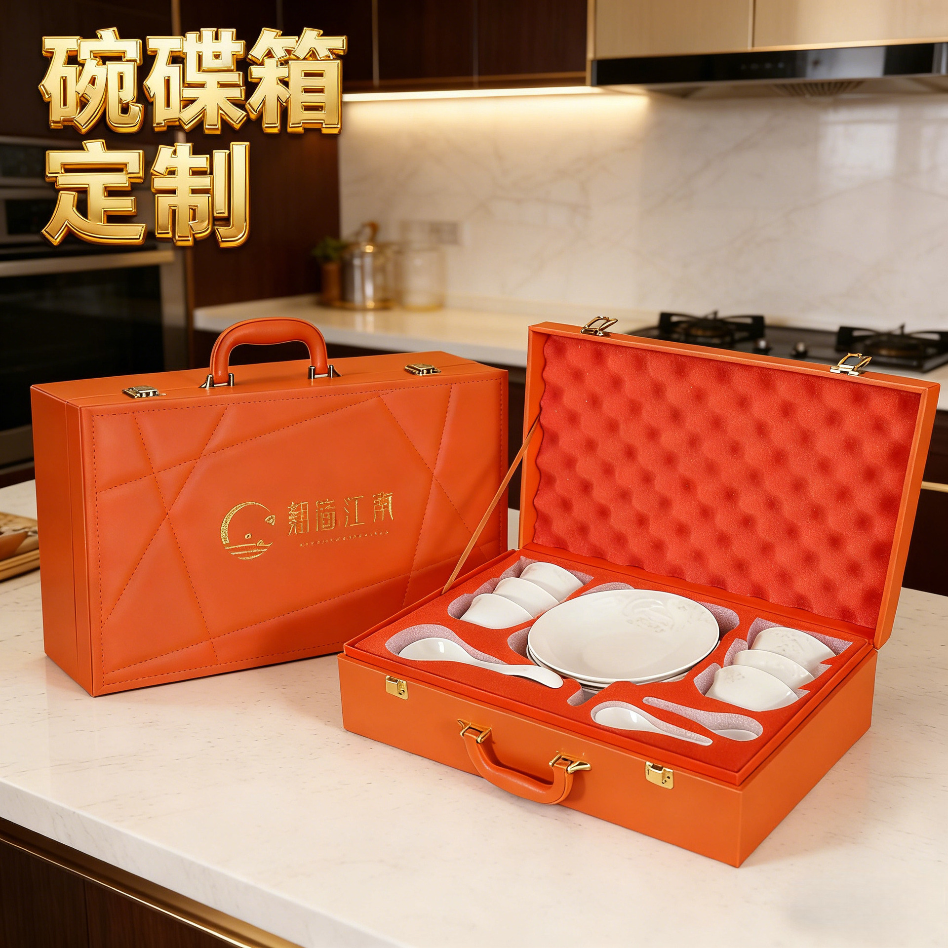 カスタム食器革箱、陶磁器、ボーンチャイナのボウル、プレート、ディッシュ、ロゴ入り納品箱、食器セット、空箱、ギフト包装、お土産箱